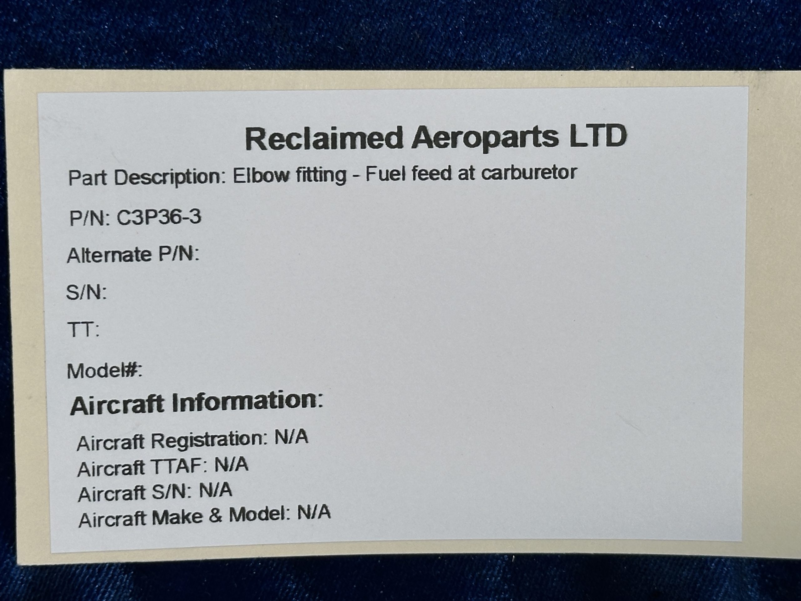 ELBOW FITTING - FUEL FEED AT CARBURETOR
