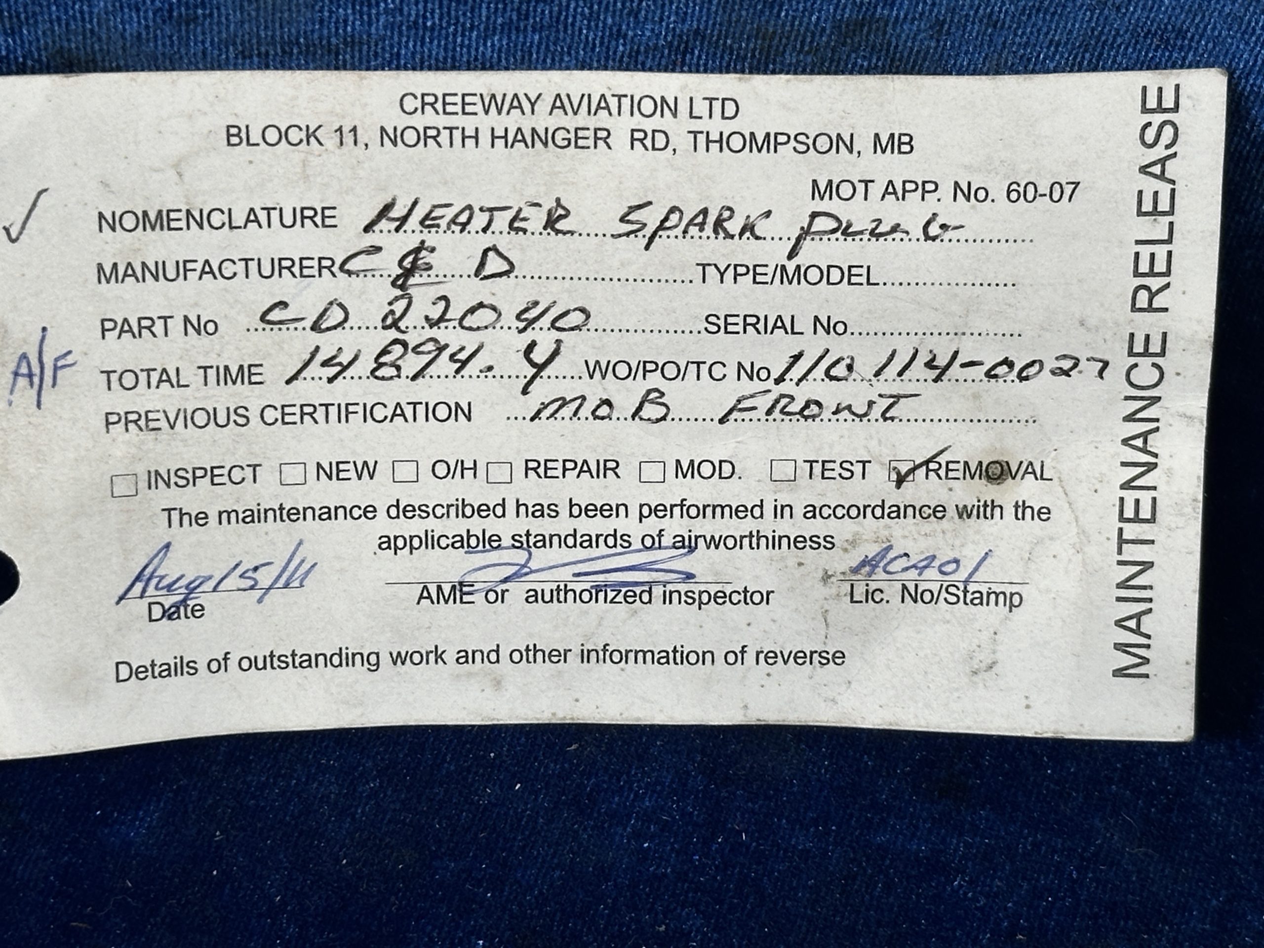 IGNITION PLUG - COMBUSTION HEATER (C&D)