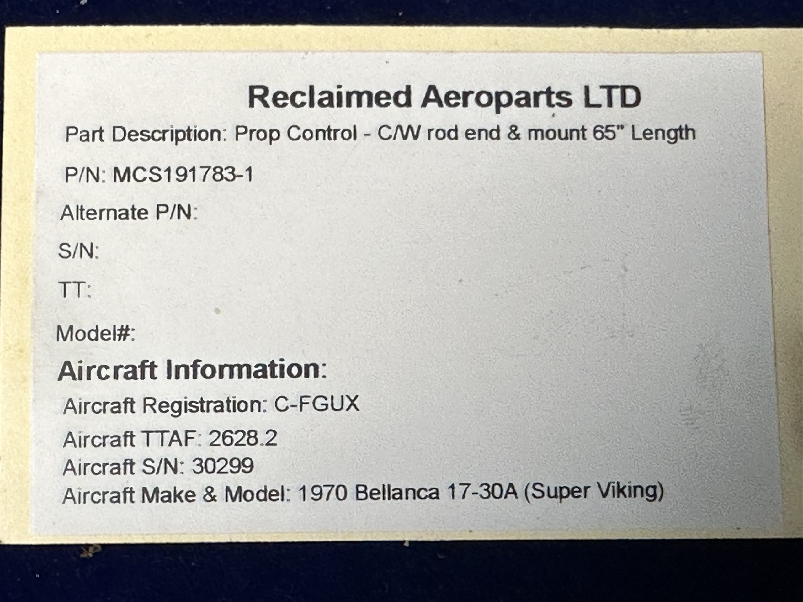 PROP CONTROL WITH ROD END & MOUNT 65in LENGTH