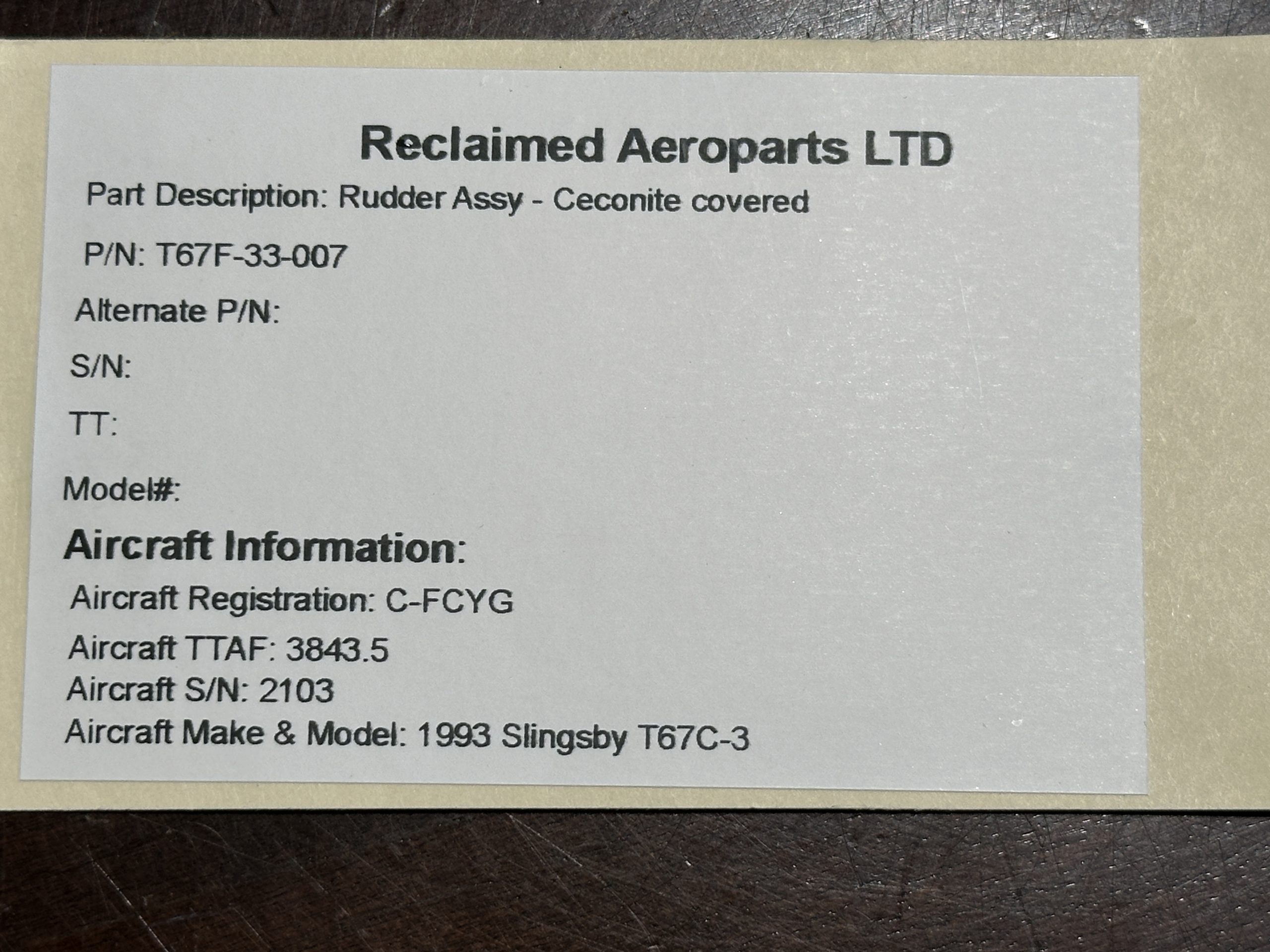 C-FCYG / SLINGSBY T67C-3