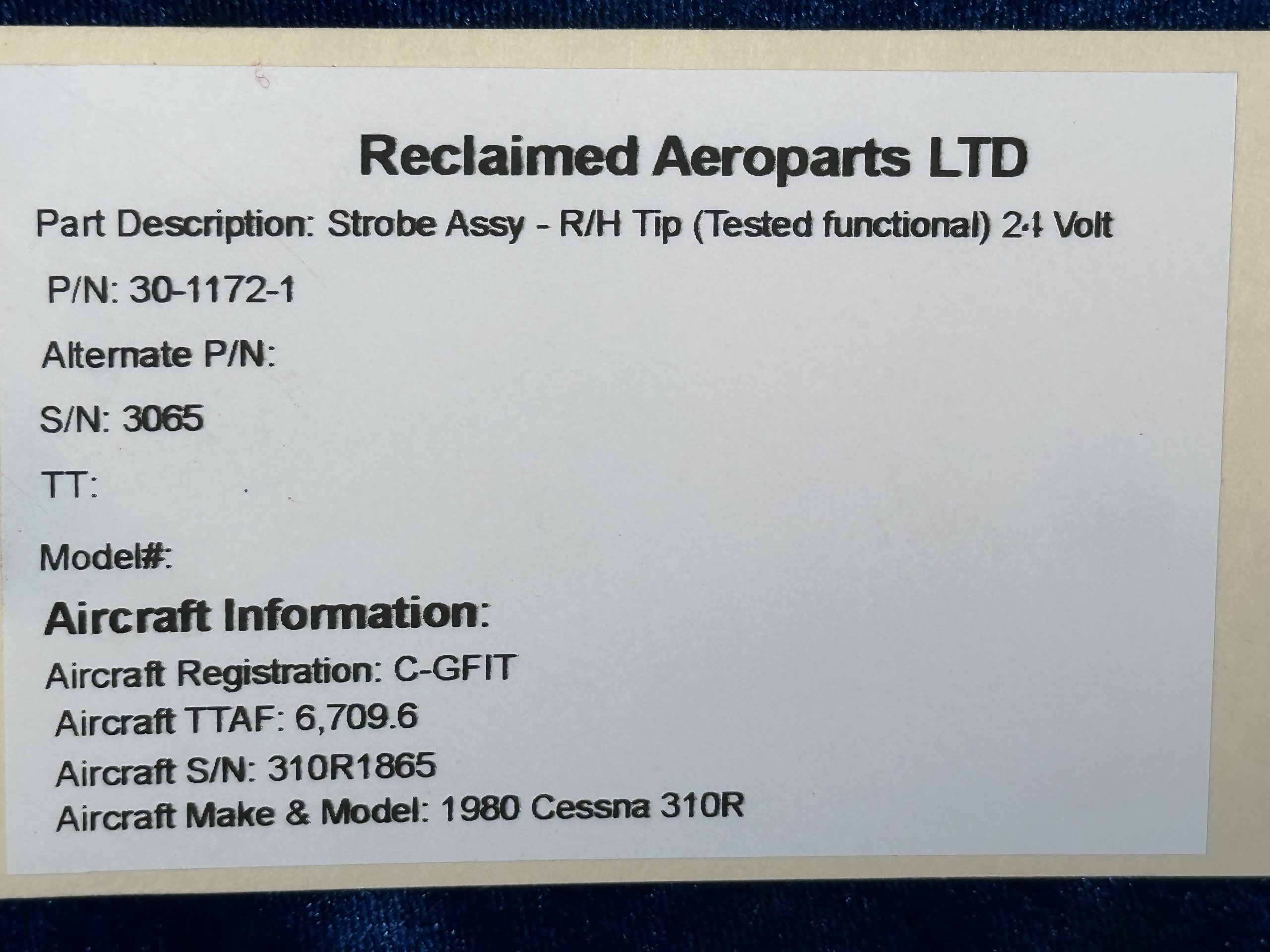 STROBE ASSY RH TIP - 21volt (TESTED FUNCTIONAL)